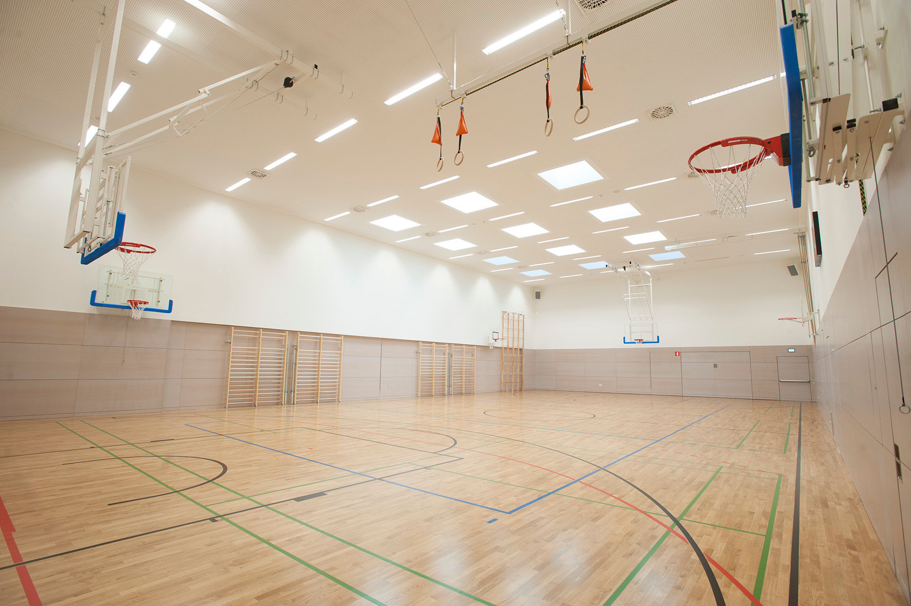 In seguito a un concorso indetto a livello europeo, il progetto dello studio di architettura Karl + Probst di Monaco di Baviera ha vinto il primo premio e ottenuto il riconoscimento per la sua realizzazione. I moduli del nuovo edificio hanno una disposizione compatta, creando così spazi aperti e per la ricreazione interdipendenti e, per quanto possibile, ampi. I piani sfalsati del cortile della scuola e i corpi in parte rientranti determinano volumi dagli effetti dinamici. La nuova costruzione ospita 31 aule normali, aule speciali e locali secondari, gli uffici amministrativi, la sala professori, due palestre ed una biblioteca. Opera edile all’interno della città.